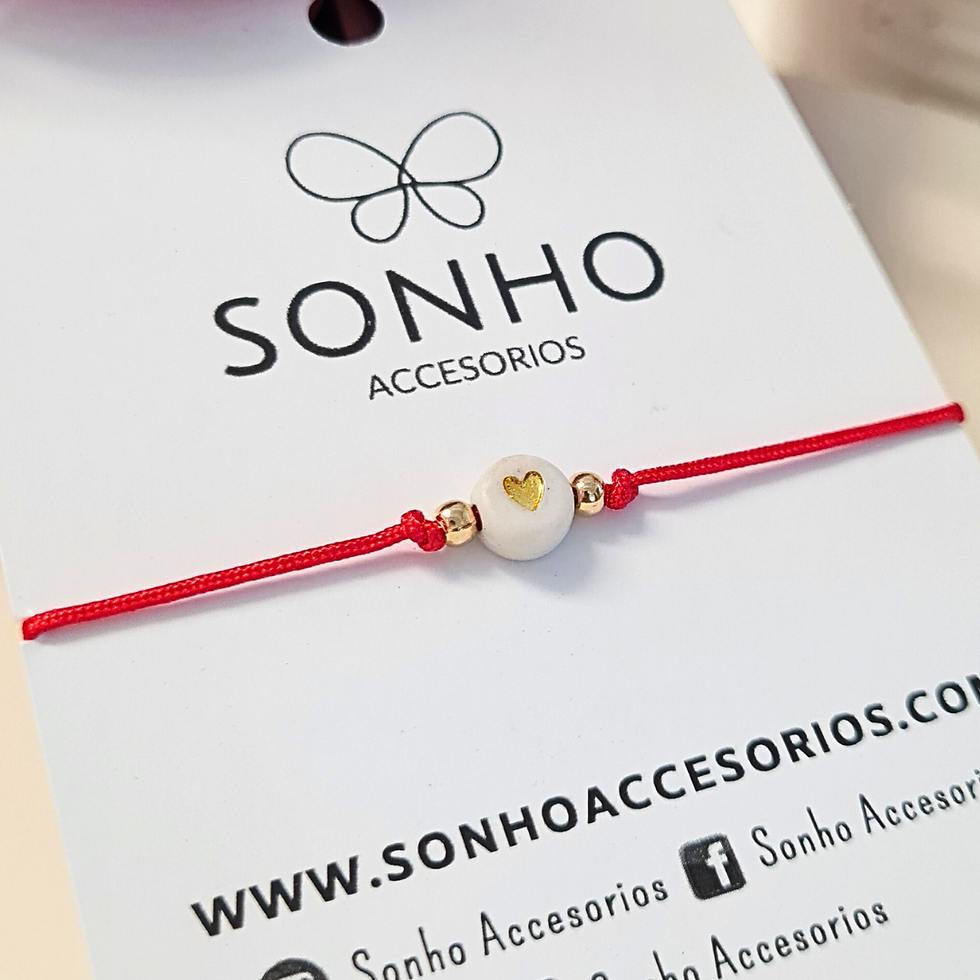 Pulsera Corazón Dorado con Hilo Rojo